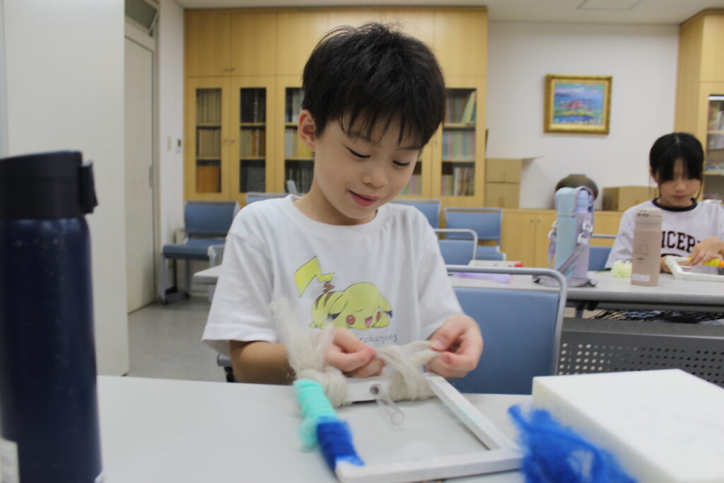 いつも使っている専用の針ニードルは使わずに、今回は手で羊毛フェルトをフレームに巻き付けて