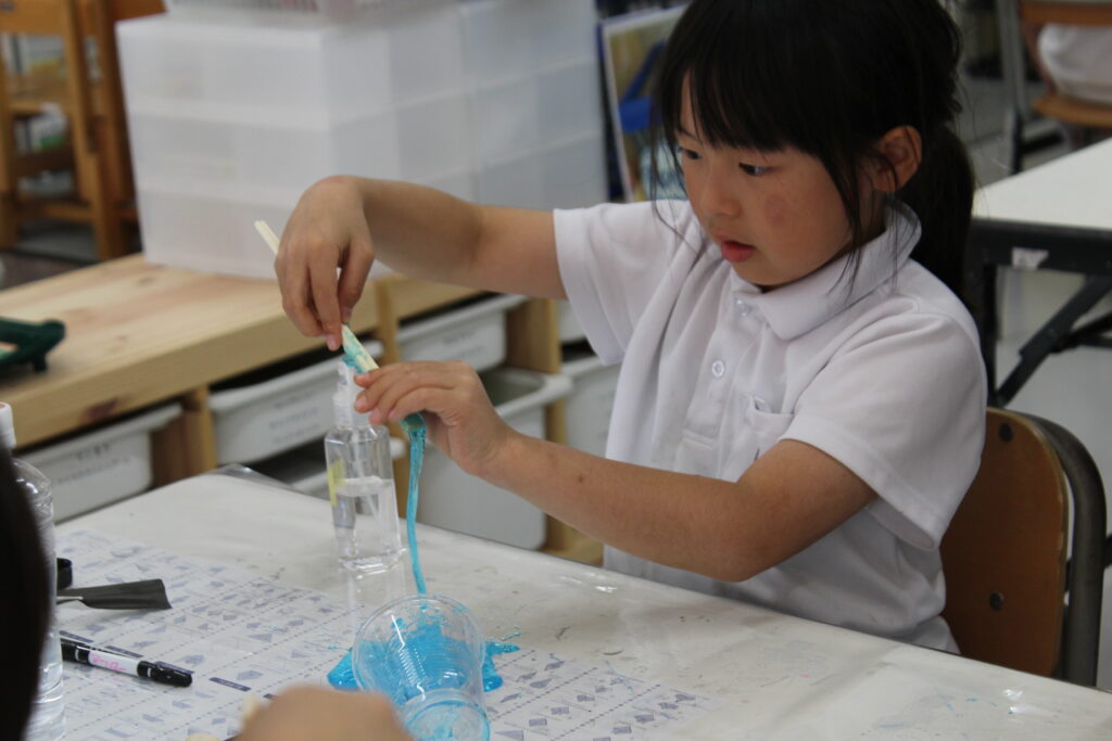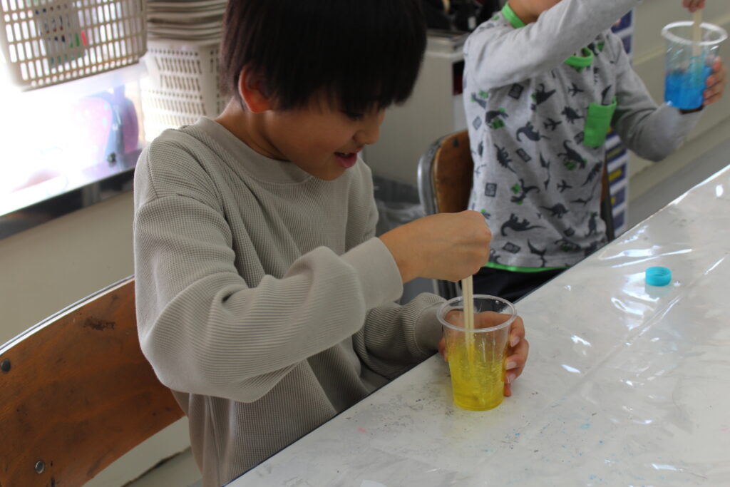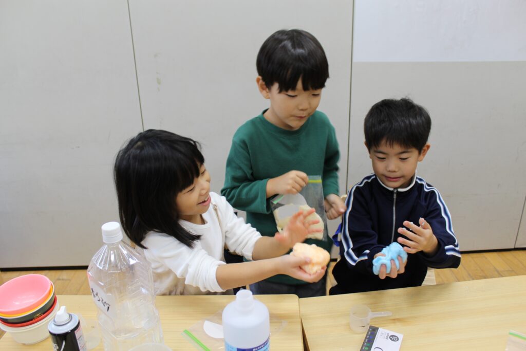いました♪ みて~!触ってみて!とみんな出来上がったスライムを嬉しそうに見せてくれました!