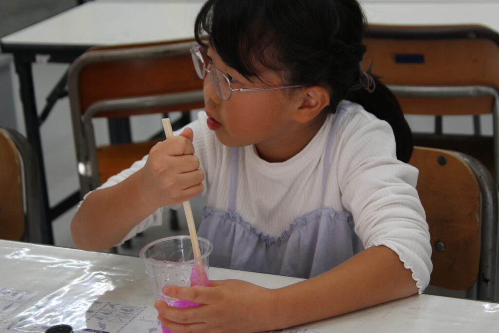 自分好みの色を付けて、固まるまで材料をまぜまぜ…出来上がった後は、ひやとろ~な感触を楽しんで