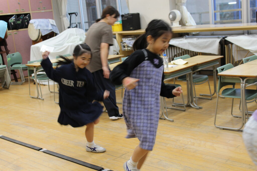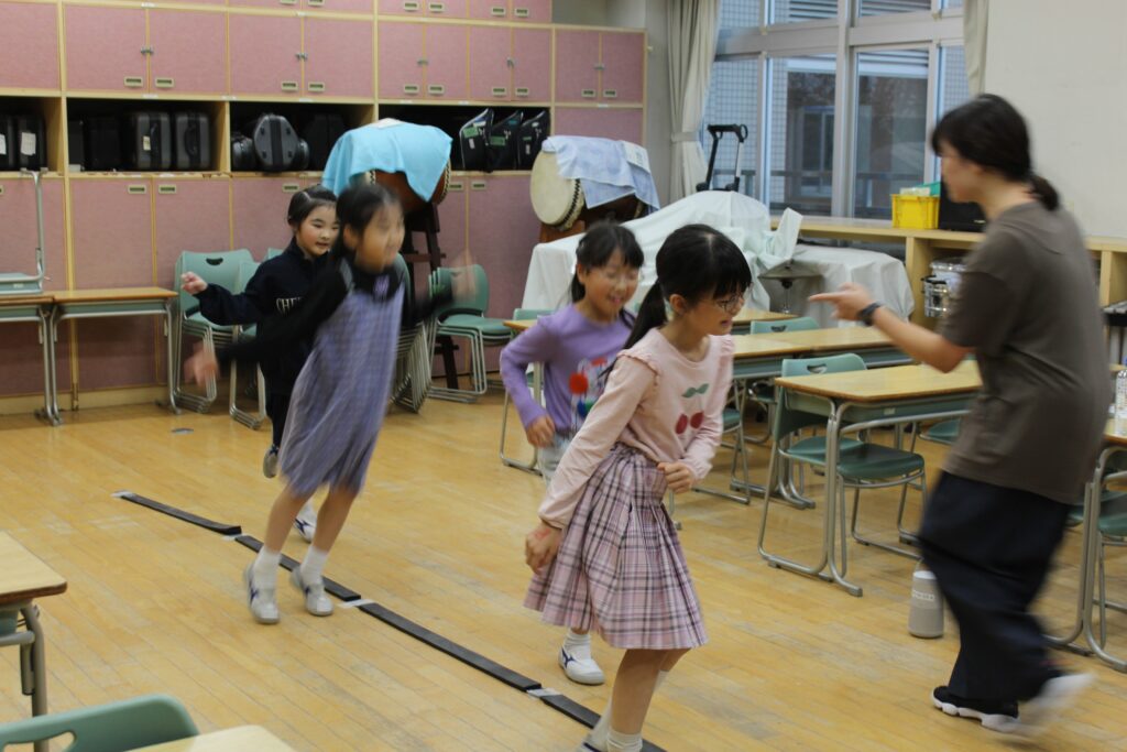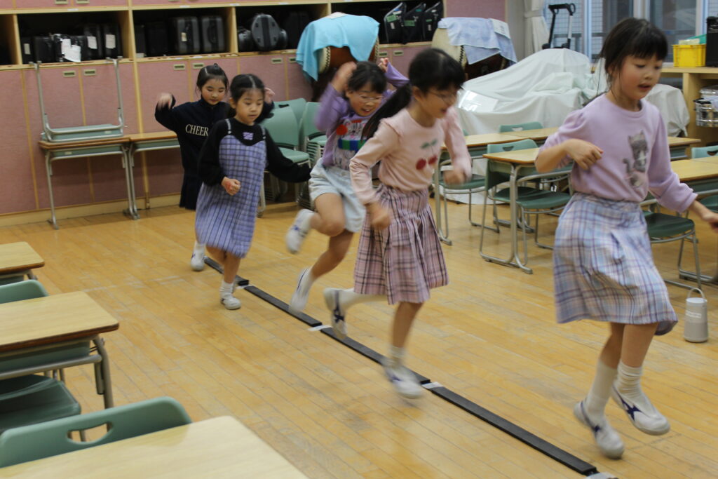 ラインに触らないように、リズムに合うように、頭も身体もフルに使って、みんなでジャンプ!
