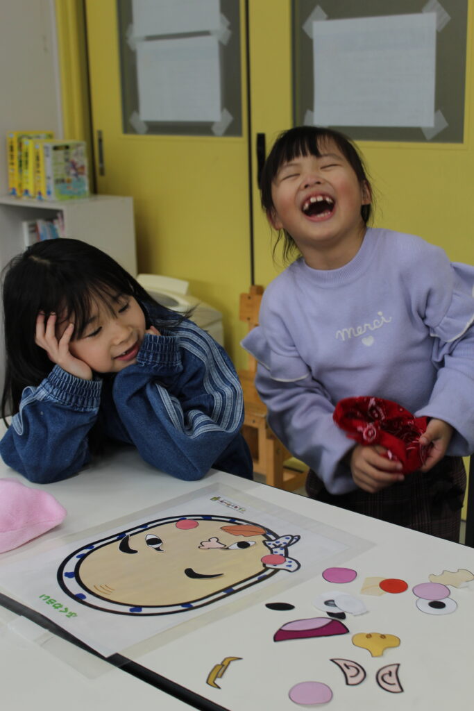 福笑いは自分で挑戦するのも、みんなの作品をみているのも、とても面白かったようで大盛り上がり!