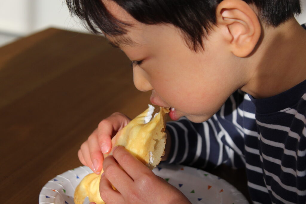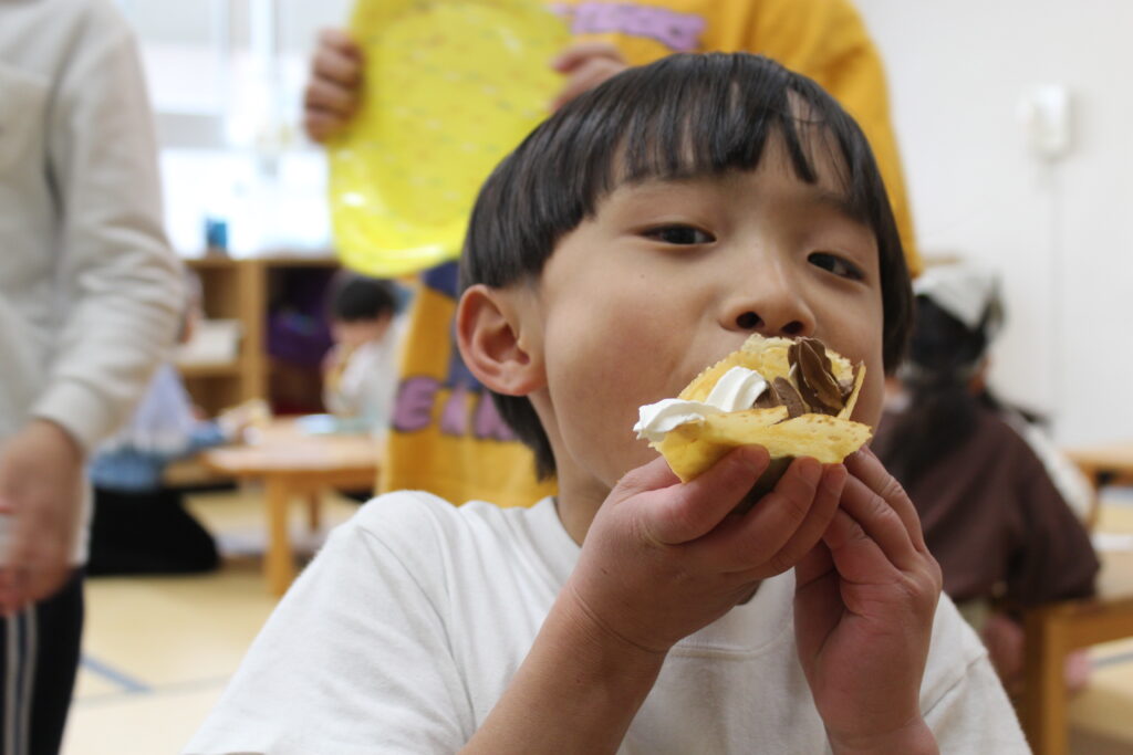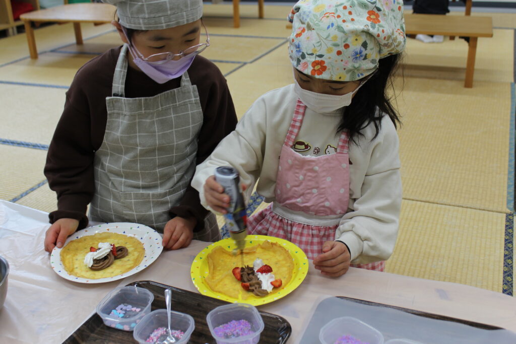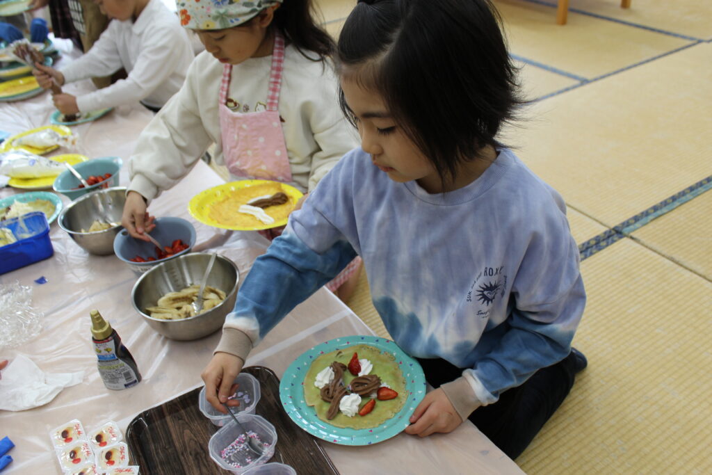 具材が多かった子は少し苦戦するも、最後はみんな綺麗にクレープに包んで、美味しく食べることができました♪