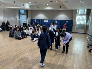・昨年は息子と父親が参加し、母は今年初参加させていただきました。子供たちは生き生きと楽しそうでした。後半のグループでの大ピンチ劇では、積極的な子、とてもおとなしい子、おそらくあがり症かなと思われる繊細そうな子と、色々な子供達がいて、準備ではザックリした内容しか決まらないまま本番をむかえました。が、子供達は皆、本番に強く堂々としていて、ビックリしました。トキワ松生はみんなとともに、みんなの前で表現を楽しむ場数を踏んできているのね!と思いました。(保護者)