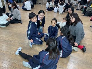 この日はクラス・学年が混ざり、しかも保護者の方々も一緒だから、いつも以上にわくわくした表情の子どもたち。緊張する様子もなくあっという間に場があたたまっていきます。