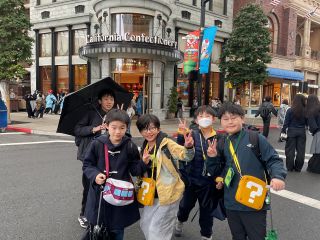 2日目はユニバーサルスタジオジャパンで1日班行動をして楽しみました。この日だけあいにくの雨でしたがびしょ濡れになるアトラクションもあるので、全く気にせず楽しんでいました。雨でいつもよりも空いていて思ったよりもスムーズに乗り物に乗れたようです。